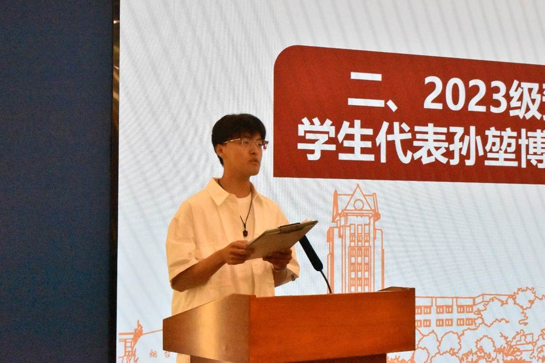 2023级预科班学生代表孙堃博分享了预科一年的经验和收获,他叮嘱学弟学妹们刻苦学习,珍惜时间,努力拼搏,找到自己的兴趣所在,选择最适合自己的专业。